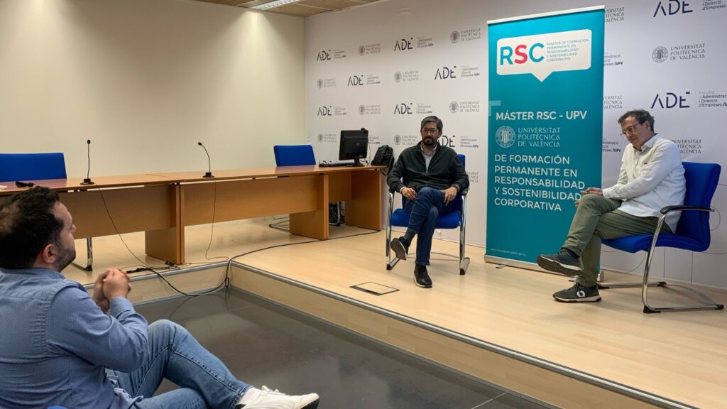«La razón de ser de la empresa es afrontar los problemas de la sociedad y hay que empezar a cuestionar y a exigir que las cosas se hagan de forma diferente», afirmó Christian Mecca, fundador y CEO de Impacto Consciente, durante su charla ‘Emprendimiento social y liderazgo consciente, claves para el desarrollo de una economía de triple impacto’, enmarcada en el ciclo ‘Hablamos de sostenibilidad con…’ del Máster en Responsabilidad y Sostenibilidad Corporativa de la Universitat Politècnica de València.